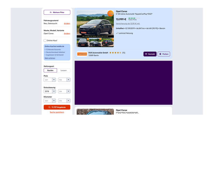 back All desktop mobile advertising sample Image Ad mobile.de A single, powerful image – precise, high-quality, and attention-grabbing.With the mobile.de Image Ad, you can showcase existing Meta assets perfectly and increase interest in the automotive environment. Specification (PDF, 360 KB)