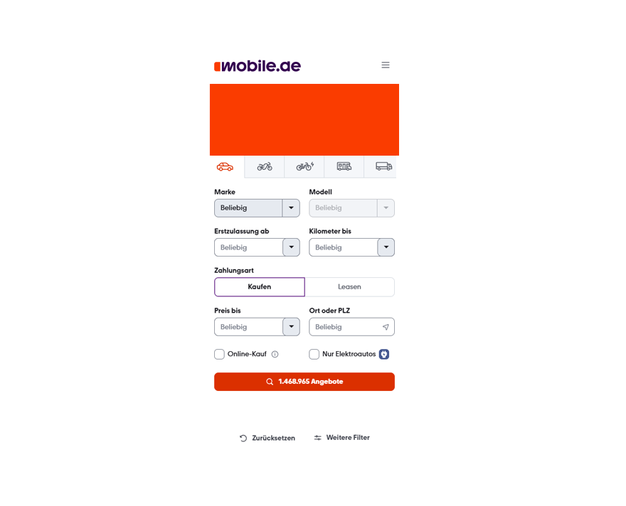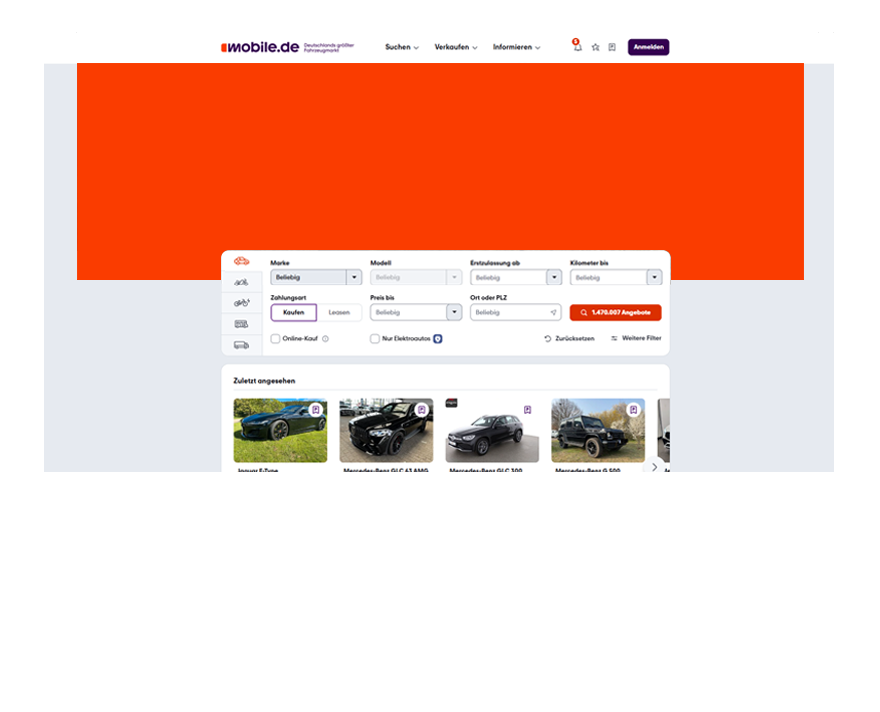 On the mobile.de homepage, you can choose from a wide variety of fixed homepage placements. The “Billboard Extended” Homepage Event offers you the largest possible amount of space on the homepage with our Billboard, Halfpage Ad and Lower Superbanner. You can also book this Event with the Skyscraper and without the Lower Superbanner. All Homepage Events are fixed-price products that can be booked exclusively for 24 hours. Our fantastic range of products means we can guarantee a unique and exclusive appearance on our homepage. Get creative and get noticed by bringing your most eye-catching designs to life!